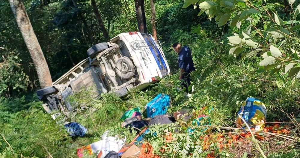 बुटवलदेखि गुल्मी जाँदै गरेको बागमती प्रदेश ०१–०३१ च ७९५७ नम्बरको रातो प्लेटको इलेक्ट्रिक भ्यान क्षमताभन्दा बढी यात्रु बोकेर गुडिरहेको अवस्थामा सडकदेखि करिब ५० मिटर तल खसेको प्रहरीले जनाएको छ।