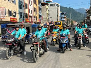 संघमा आवद्ध व्यवसायीहरू नेपाल ईज सेज डेस्टिनेशनल अंकित टिसर्ट लगाएर मोटरसाईकलमा सहभागी भएका थिए ।