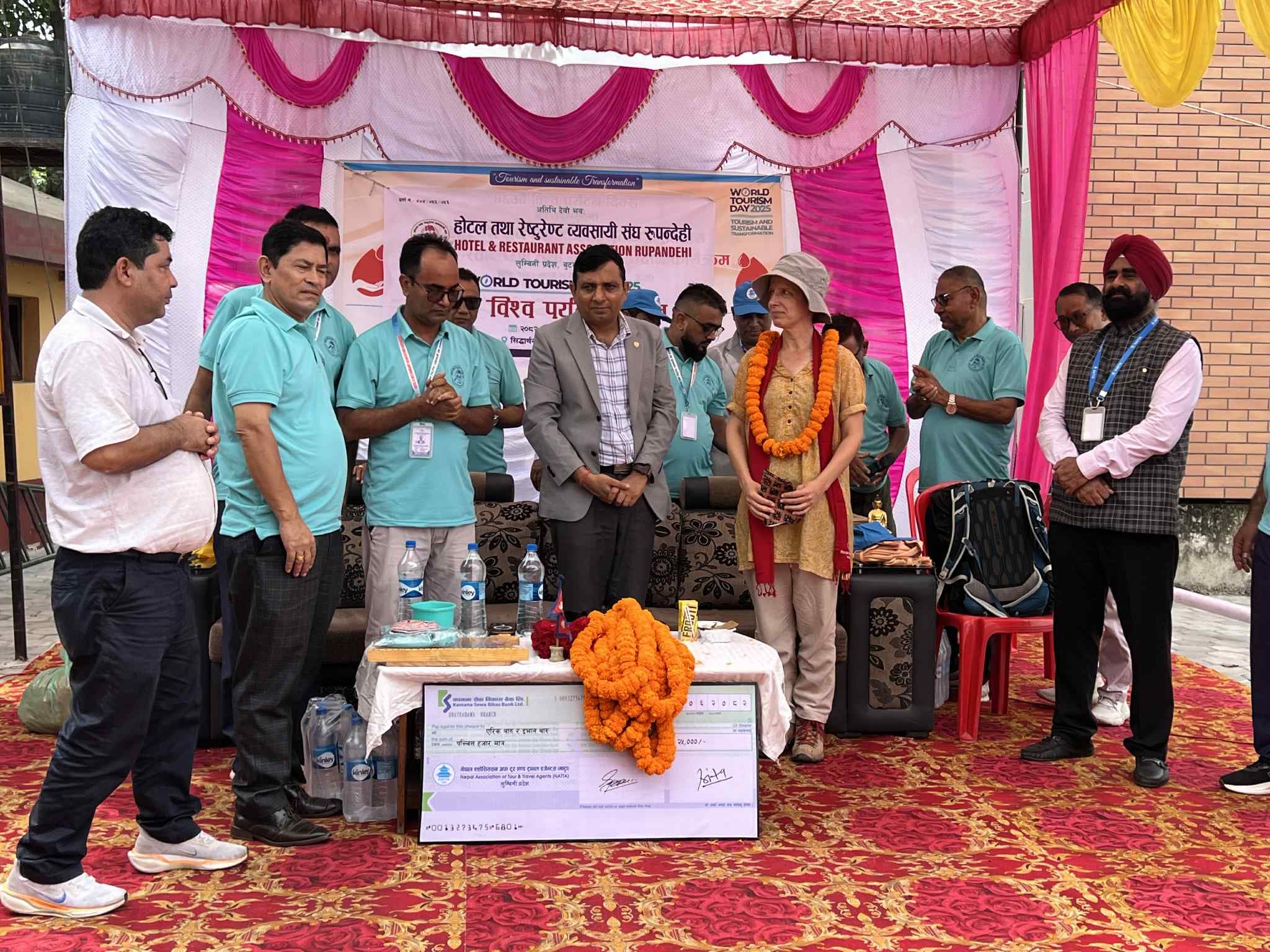बुटवल ।४६ औं विश्व पर्यटन दिवसको अवसरमा रुपन्देहीमा मोटरसाइकल ¥याली तथा अन्तरक्रिया कार्यक्रम सम्पन्न भएको छ । जेनजी आन्दोलनपछि पर्यटन क्षेत्रमा सुरक्षाको विषयमा बढ्दो चिन्ता मध्यनजर गर्दै “नेपाल सुरक्षित गन्तव्य” भन्ने नारासहित होटल तथा रेस्टुरेन्ट व्यवसायी संघ रुपन्देहीले कार्यक्रम आयोजना गरेको हो ।