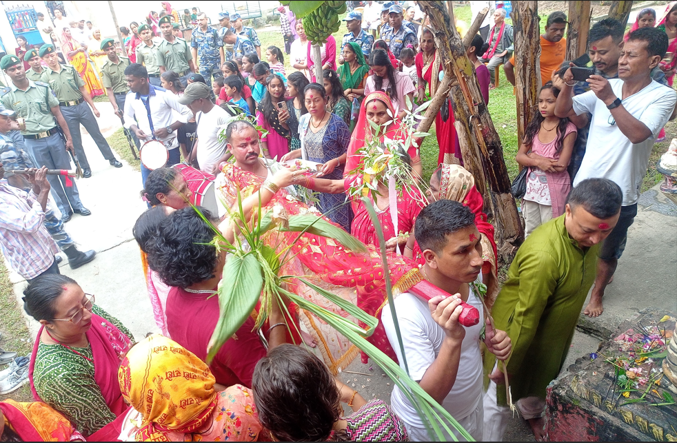 ‘केरामा ब्रह्माणी, दारिममा रक्तदन्तिका, धानमा लक्ष्मी, हलेदोमा दुर्गा, मानवृक्षमा चामुण्डा, उखुमा कालिका, बेलपत्रमा शिवा, अशोकमा शोकरहिता र जयन्तीमा कात्तिकी देवीको आवाहन गरी पूजा गरिन्छ, यी देवी नवदुर्गाका पार्षद् अर्थात् सहायक हुन्’, उनले भने।