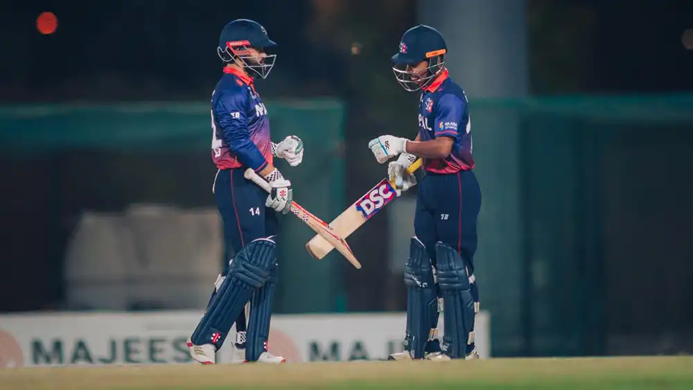नेपालका लागि कुशल भुर्तेलले ६६ रन बनाएका थिए । यो कुशलको टी-२० खेलमा १२औं अर्धशतक हो । त्यस्तै दिपेन्द्र सिंह ऐरीले २० रन बनाएका थिए । त्यस्तै कप्तान रोहित पौडेलले १६ रन बनाएका थिए । त्यस्तै आसिफ सेखले २, कुशल मल्लले ४, सन्दीप जोराले ५ र गुलशन झाले ५ बलमा २० रन बनाएका थिए । त्यस्तै सोमपाल कामीले १ र नन्दन यादवले २ रन बनाएका थिए ।