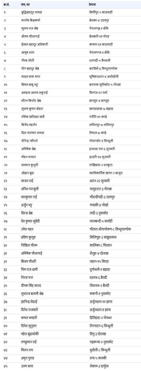 काठमाडौँ। सरकारले जेनजी आन्दोलनका क्रममा मृत्यु भएका ४५ जनालाई शहीद घोषणा गरेको छ। गत भदौ २३ र २४ गते नागरिकहरूले राष्ट्र हित, सुशासन र भ्रष्टाचार नियन्त्रणका माग राख्दै गरेको प्रदर्शनका क्रममा उनीहरूको मृत्यु भएको थियो।