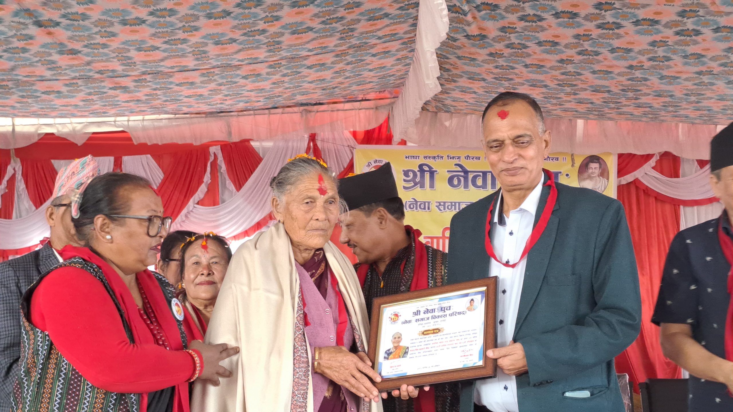 जेष्ठ नागरिकलाई सम्मानपत्र र दोसल्लासहित सम्मान गरिएको छ ।