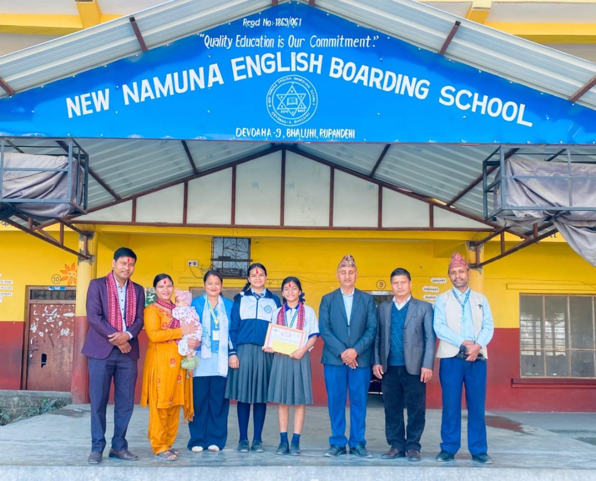 प्रतियोगितामा विजयी विद्यार्थी तथा अभिभावकलाई शुक्रबार न्यू नमुना ईङलिस बोर्डिङ स्कुलका प्राचार्य चुडा बहादुर थापा र सहप्राचार्य लक्ष्मी पुन अधिकारीलगायतका शिक्षकहरुले विद्यालय प्राङ्गणमा आयोजित कार्यक्रममा बधाई दिदै उत्तरोत्तर प्रगतिको शुभकामना व्यक्त गरे ।